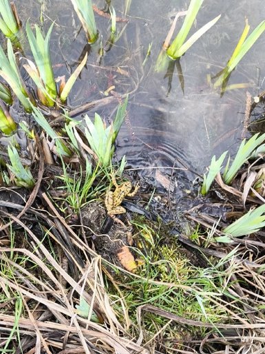 Pendant ce temps, de jeunes crapauds communs et grenouilles rousses commencent à quitter la mare.